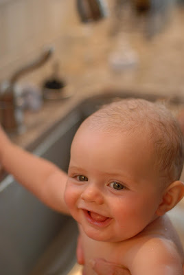 After lunch to celebrate Grandmother's birthday, we headed to the lake to see Mom. We took a boat ride in the evening, and Rowan did not like his life jacket. He was a litte bit miserable. But he did manage to give a few smiles.